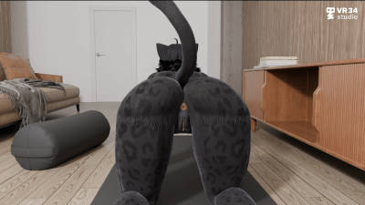 Shani Panther, a furry character, is naked in her living room, on her knees, teasing the camera as she moves her ass from side to side. Available in VR, this porn video shows her playful movements up close.